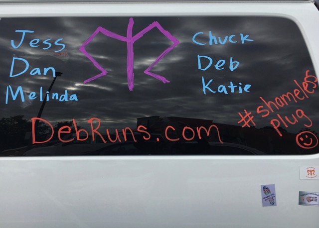 As soon as we got Melinda taped up, we loaded back into the van and headed to the next exchange where it would finally be time for me to run. While waiting for Chuck to come in, I got to visit with my MRTT friends Julie, Sarah, and Katherine, but didn’t even think to take a picture.